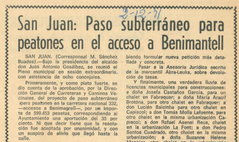 Paso subterráneo de peatones en el acceso a Benimagrell