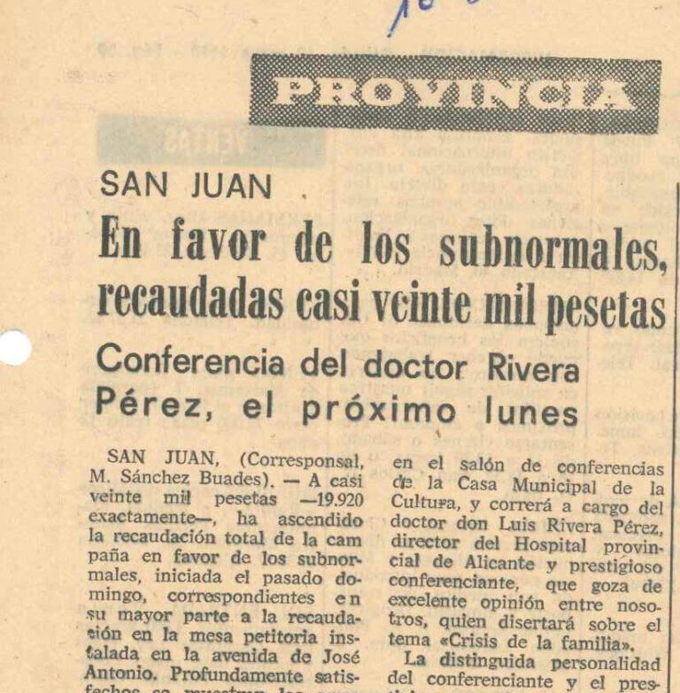 En favor de los subnormales recaudadas casi veinte mil pesetas