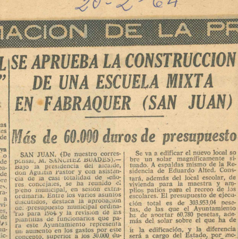 Se aprueba la construcción de una escuela mixta en fabraquer