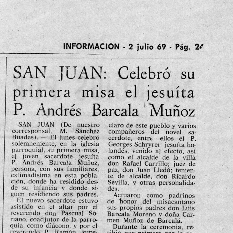 Celebró su primera misa el jesuita P. Andrés Barcala Muñoz