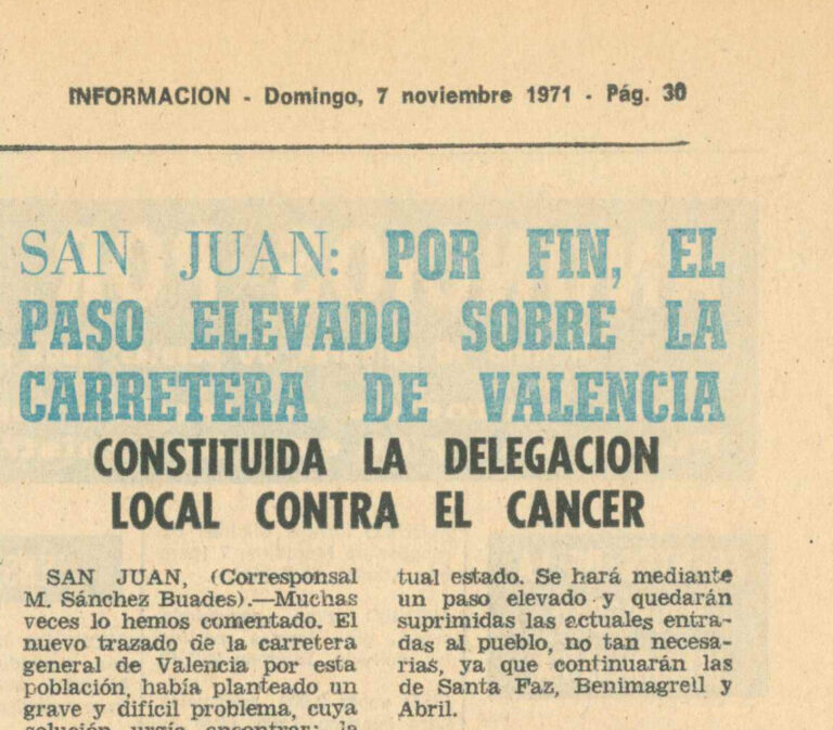Por fin el paso elevado sobre la carretera de Valencia. Constituida la delegación local contra el cáncer