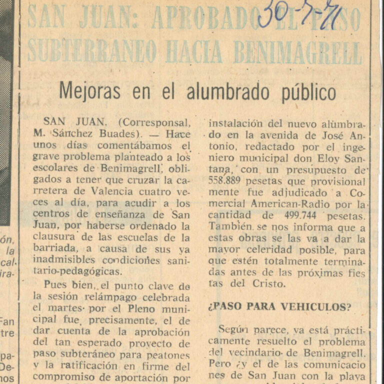 Aprobado el paso subterráneo hacia Benimagrell. Mejoras en el alumbrado público