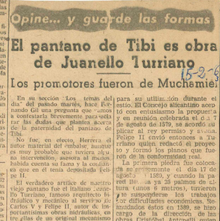 El pantano de Tibi es obra de Juanello Turriano