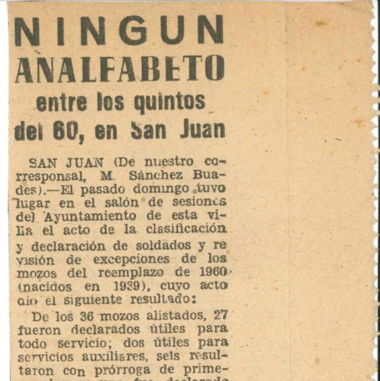 Ningún analfabeto entre los quintos del 60, en San Juan