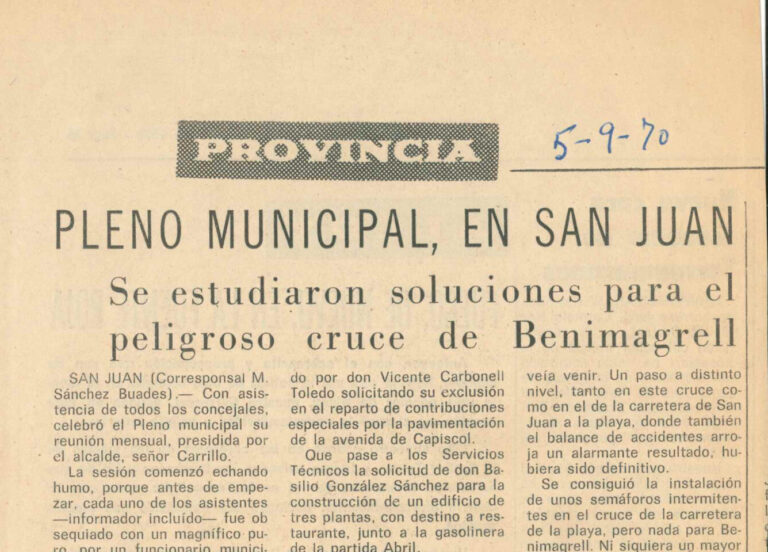Pleno municipal: soluciones para el peligroso cruce de Benimagrell