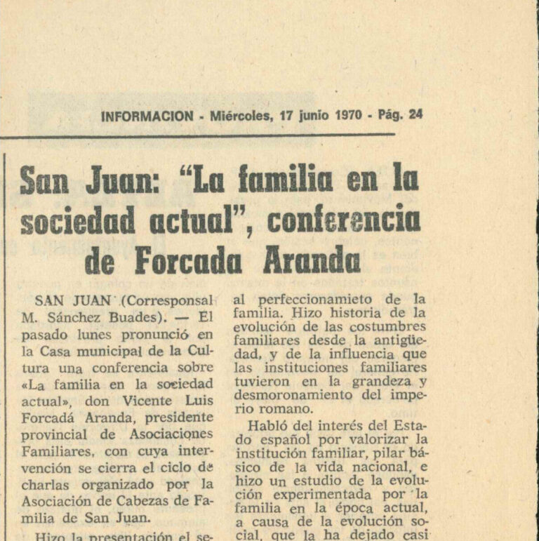 La fmailia en la sociedad actual, conferencia de Forcada Aranda