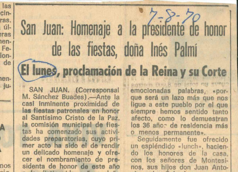 Homenaje a la presidente de honor de las fiestas, doña Inés Palmi